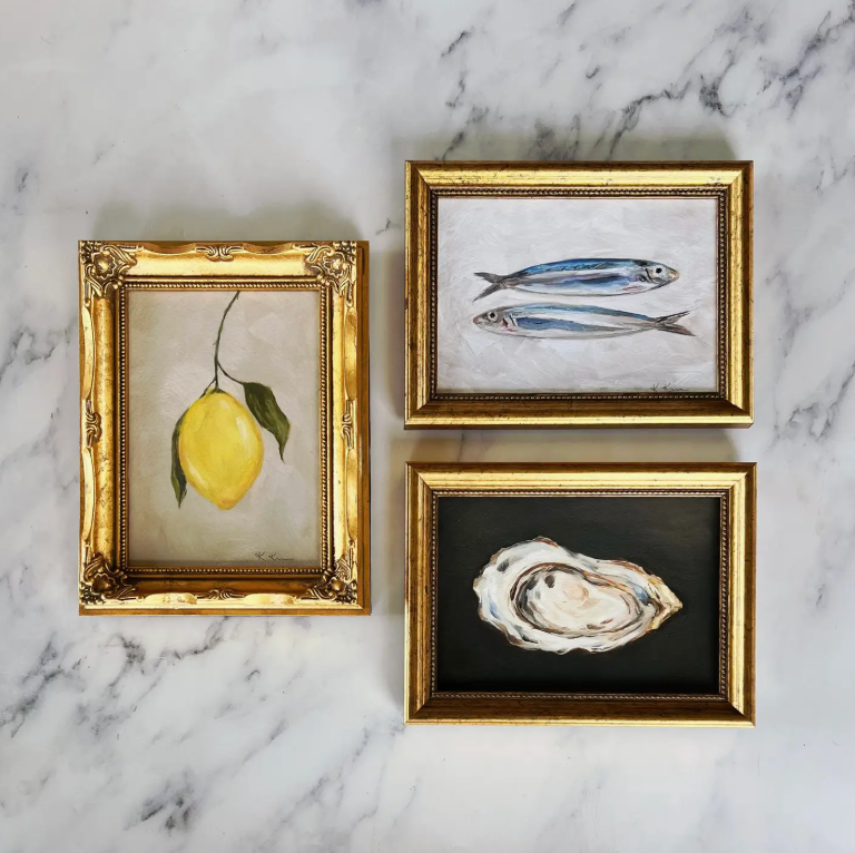 Art Prints in 8x10 and 5x7 gold wood frames - creative groupings look amazing together. Scroll through the images for inspiration!