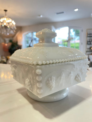 Vintage Milk Glass Lidded Jar-Square