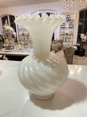 Vintage Milk Glass Ruffle Vase