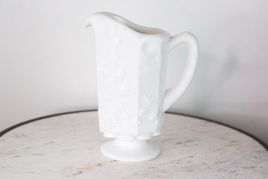 Vintage Milk Glass Pitcher -Grape