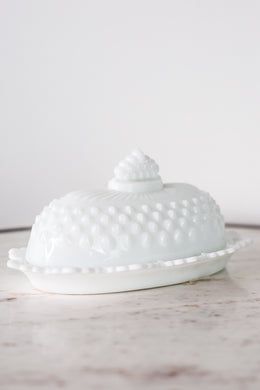 Vintage Milk Glass Hobnail Fenton Butter Dish