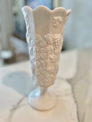 Vintage Tall Pedestal Grape Milk Glass Vase