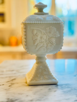 Vintage Milk Glass Grape Jar w/Lid
