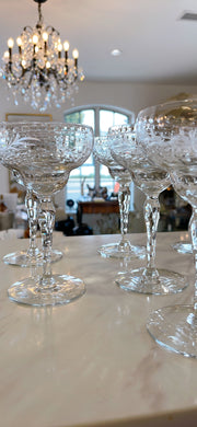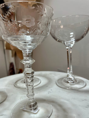 Vintage Coupes Etched Flowers Pair/2 Glasses